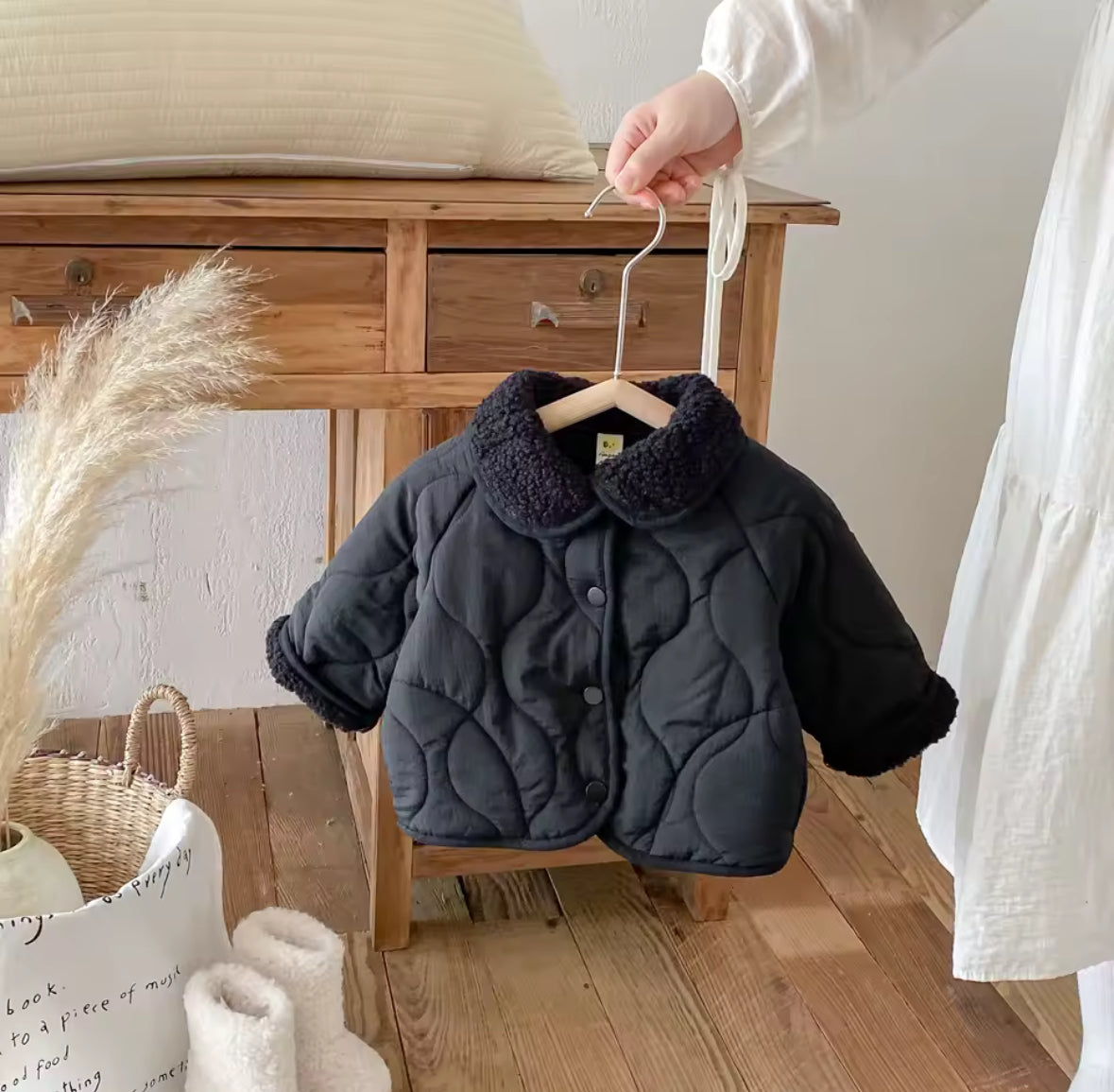 This cozy jacket is perfect for keeping kids stylish all season long. Available in two versatile colours - Beige or Black — it’s perfect for mixing and matching with their autumn wardrobe.