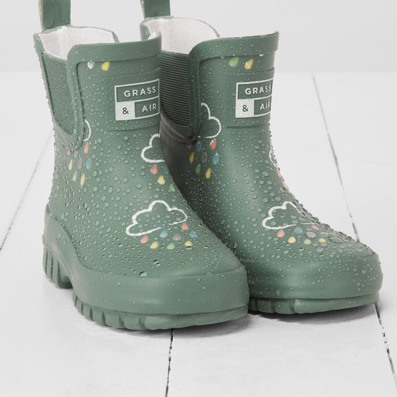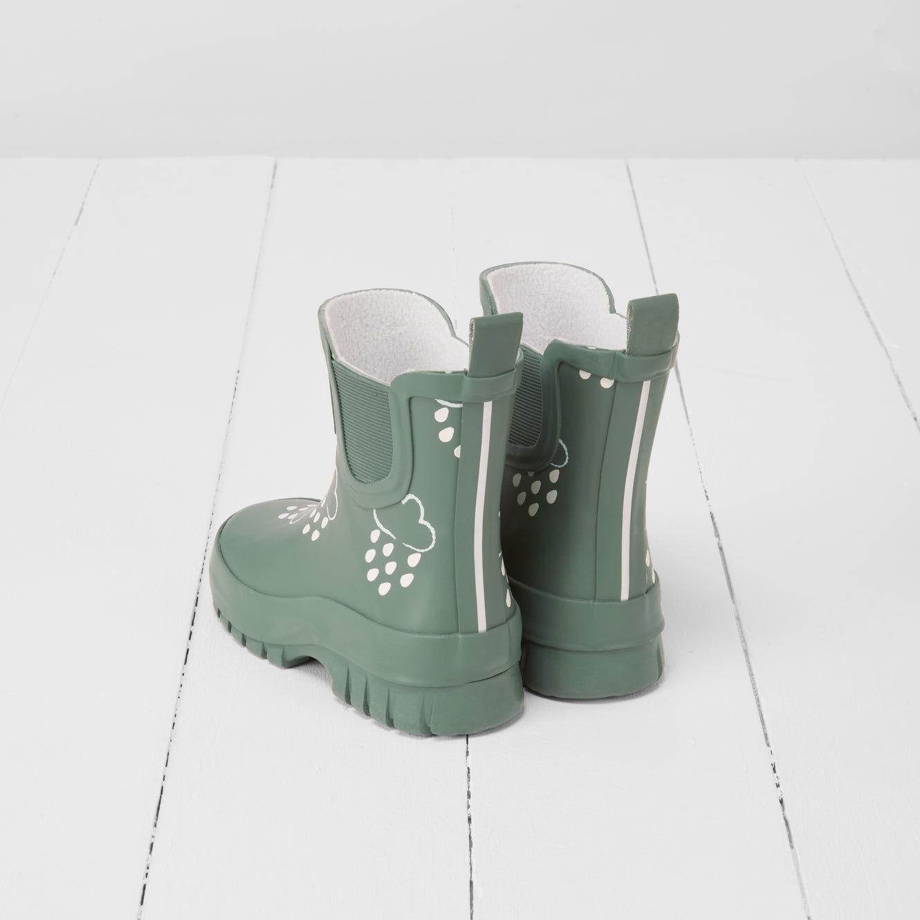 The chunky, lightweight sole gives extra grip and stability underfoot, helping little ones feel secure on wet pavements, muddy paths and playground adventures. Finished with a soft cloud and raindrop print, the raindrops change colour when wet, bringing a little magic to every rainy day.