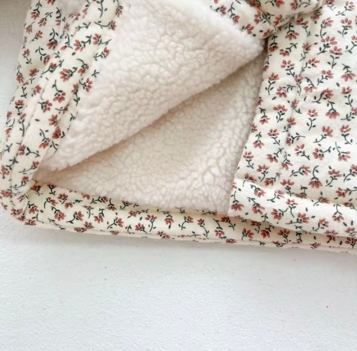 This beautifully cosy jacket is perfect for keeping little ones warm and comfortable during cooler days. Made with a delicate floral outer fabric and fully lined with ultra soft teddy fleece, it feels as gentle as it looks.