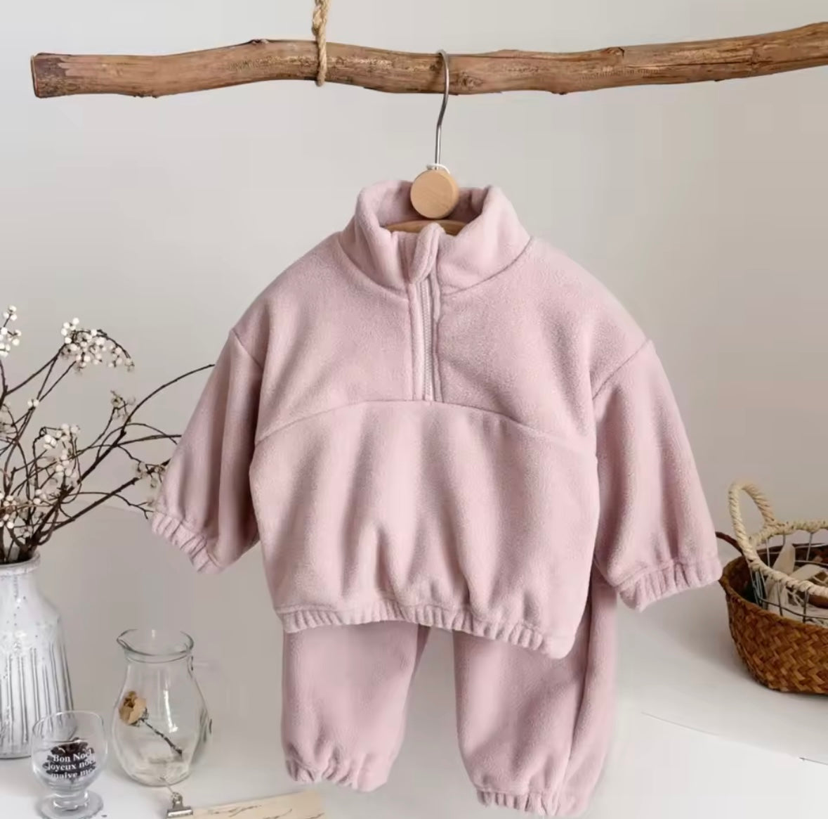 Our cosy pink fleece tracksuit is designed to keep little ones warm, comfy and cute all day long. Made from super soft fleece, it features a relaxed fit with a half zip top and elasticated cuffs and waistband for easy dressing and everyday comfort.