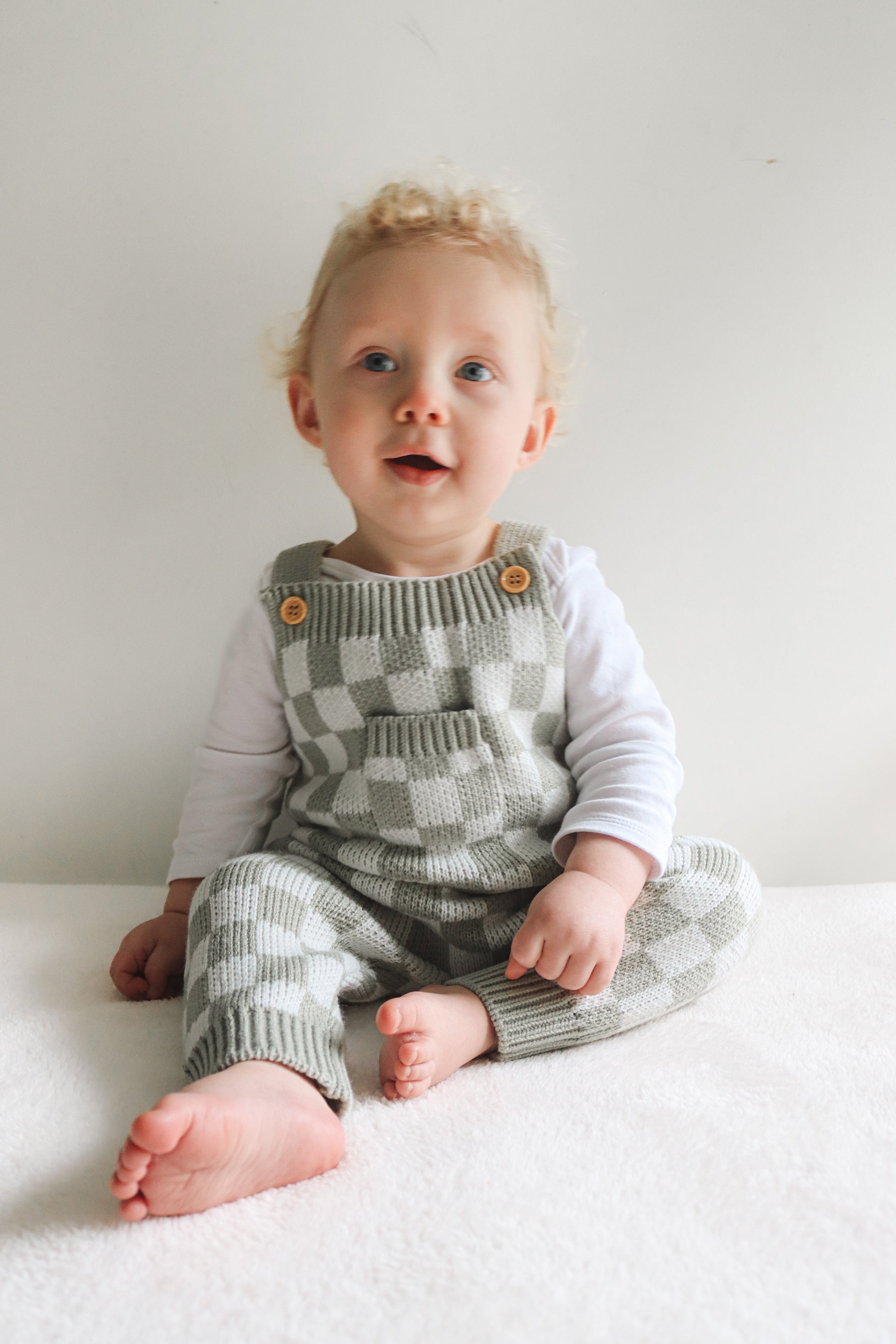 The model is wearing 9/12 months clothing (and is usually wearing 9/12 at the time of the shoot)